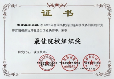 值得一提的是,东北农业大学凭借在赛事组织过程中的精心筹备与高效协调,为比赛的顺利开展提供了有力保障,被主办方授予“最佳院校组织奖”。这一荣誉不仅体现了学校对学科竞赛的高度重视,更彰显了学校强大的统筹协调能力和组织管理水平。